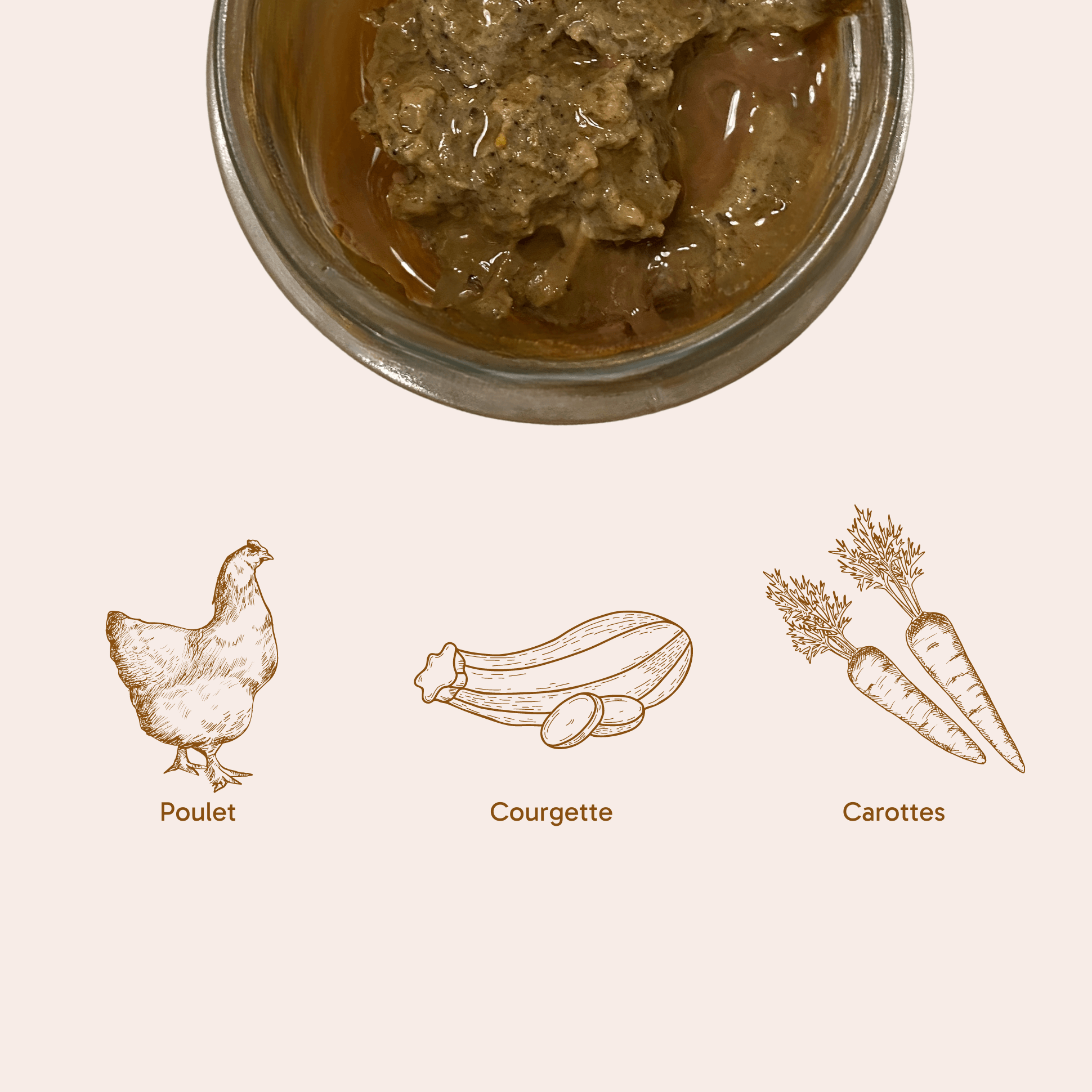 En plus de la volaille, nos pâtées sont enrichies en légumes, minéraux, acides gras essentiels, vitamines et oligo-éléments. Chaque ingrédient est soigneusement sélectionné pour créer une recette équilibrée, répondant aux besoins nutritionnels de votre chien adulte.
